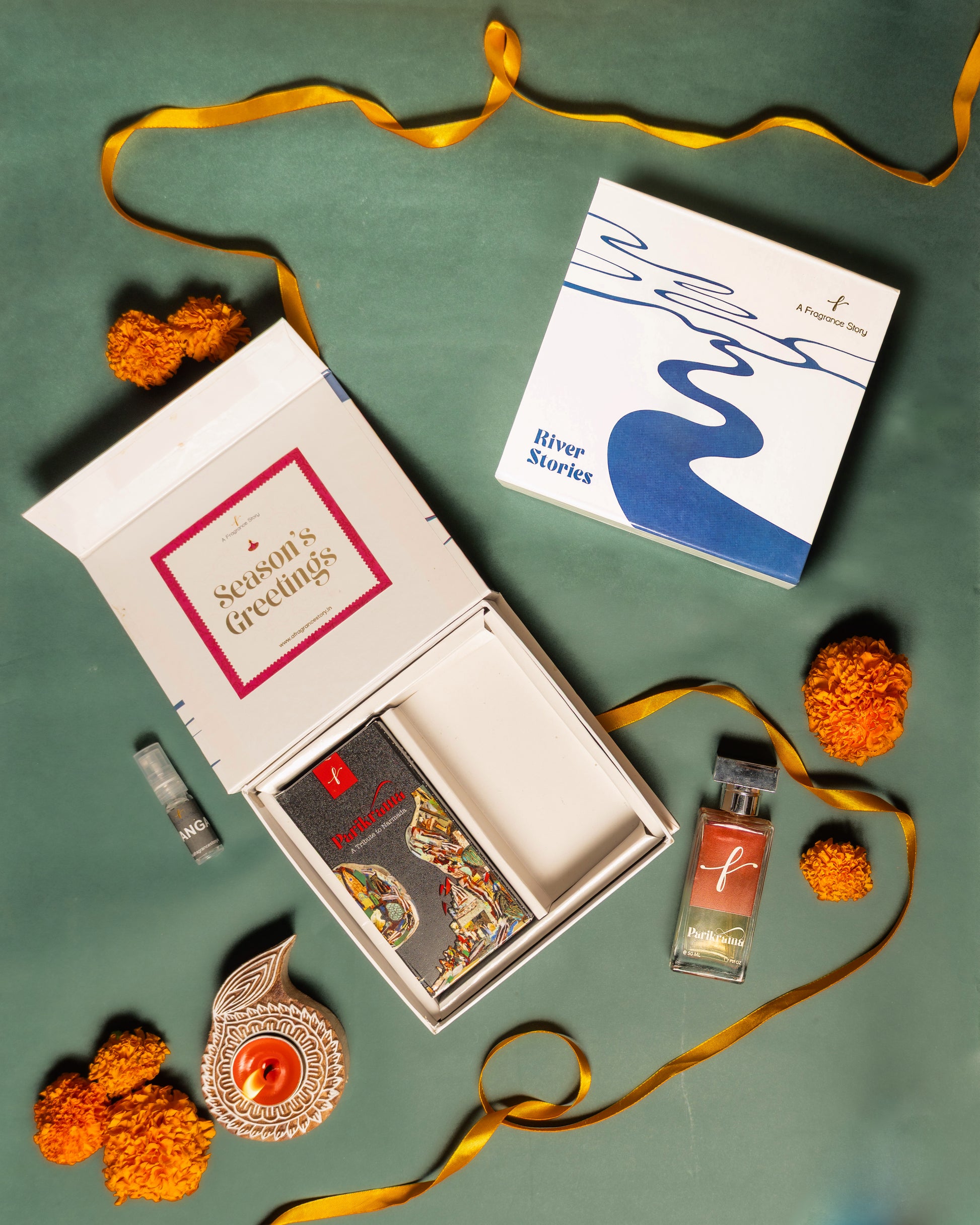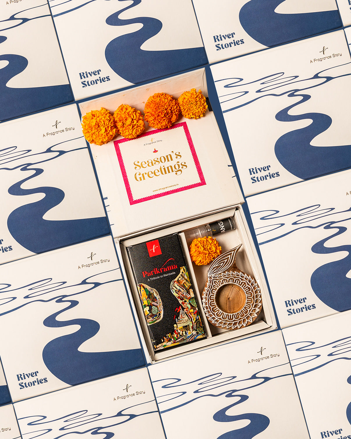 Inspired by India's rivers, this festive gift set reflects their calm, strength, and beauty, celebrating scent, craft, and tradition.