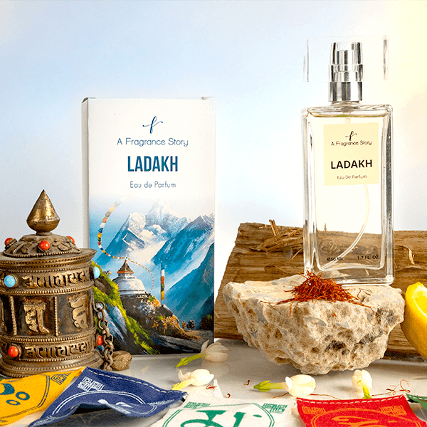 The fragrance opens with a blend of lavender, bergamot, and clary sage, mirroring the crisp mountain air that hits your face as you speed through high-altitude roads. Lavender and bergamot bring a refreshing, uplifting burst, like the cool mountain breeze that clears your mind and awakens your spirit. As you settle into the journey, the warmth of saffron, cinnamon, and labdanum unfolds; like stepping into a monastery, where butter lamps flicker, and the scent of aged wood and quiet prayers lingers. The base is deep and grounding, with cedarwood, agarwood, amber, and vanilla, capturing the essence of Ladakh. Cedarwood and amber create a soft, earthy warmth, reflecting the quiet strength and peaceful stillness of this remote place.